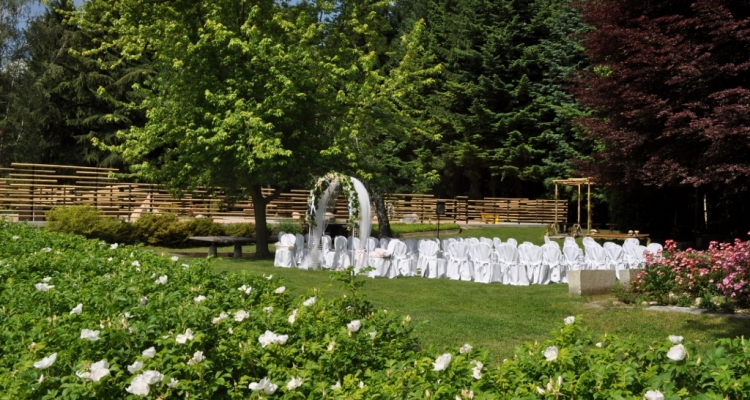 un parco immenso, contornato da un bosco di abeti, castagni, frassini,betulle e fiori coloratissimi. Lo spazio, per il suo fascino, si presta ad ogni tipo di allestimento voi desideriate per coronare il vostro giorno più importante.